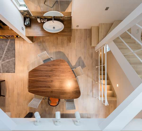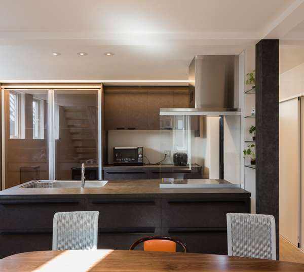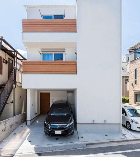 R+houseのデザイン性の高い実例に魅力を感じて依頼されたご主人。都心の住宅密集地で限られた敷地面積でも3階建ての提案で開放的に。