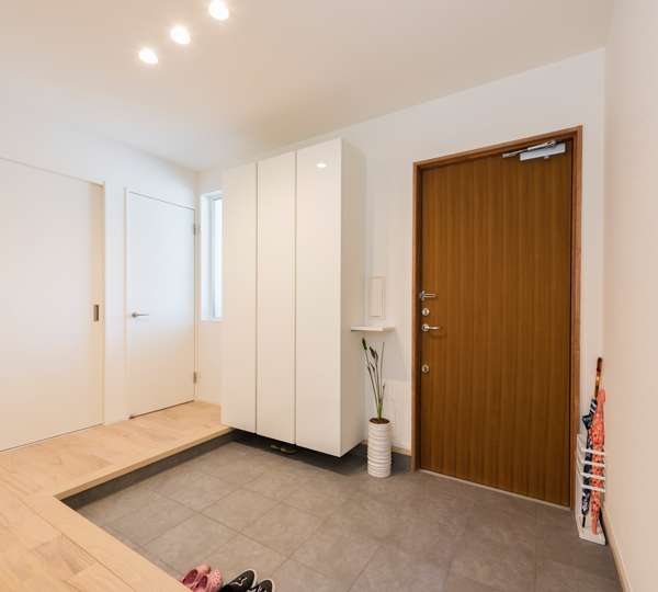 野球をしているご主人と息子さんが一緒に道具の手入れをできるように広い玄関を希望。帰ってきた時の開放感もご家族のお気に入りです。