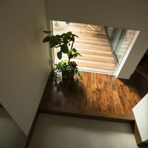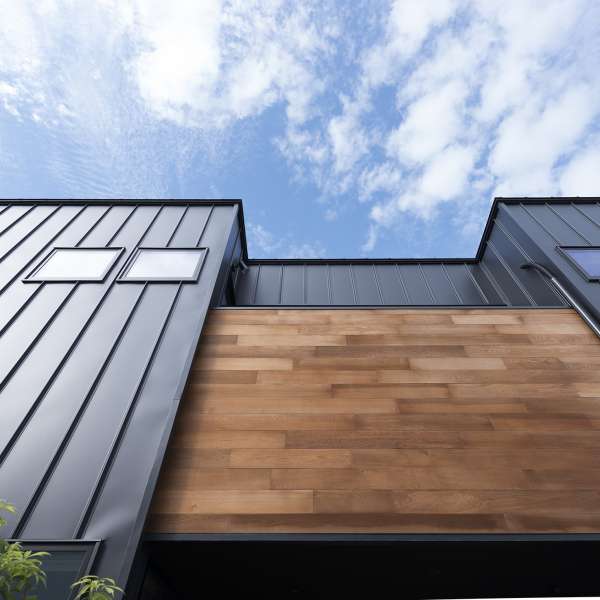 「どこから見ても格好いい家」が希望だったというご主人。一見、無機質なガルバリウム鋼板の外壁に、レッドシダーの木の風合いが見事に融合することで、全体的に温もりを添えた外観に仕上がりました。