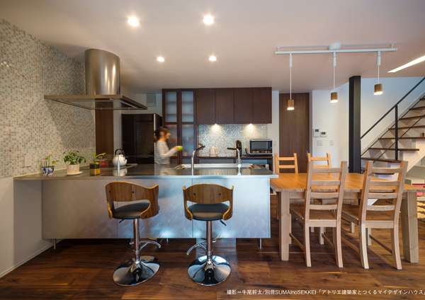 ◎広い空間でも存在感あふれるステンレス製のキッチン。