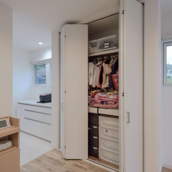 ご主人はまず勝手口から入り、そのまま浴室へ直行。ここで着替えてすぐLDでくつろげるようになりました。