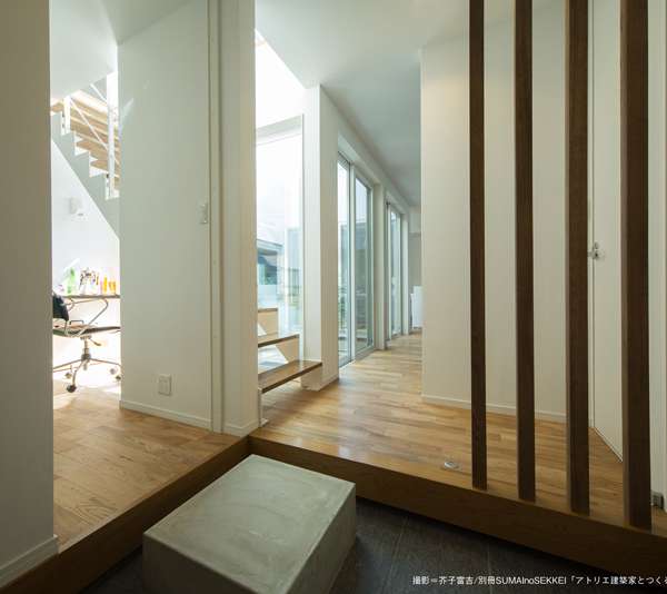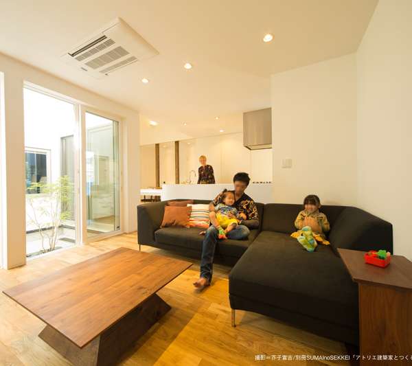建物の外側をできるだけ閉じ、そのぶん中庭からたっぷり光を招くロの型プラン。周囲の視線を気にせず、明るい環境でのびのびとした暮らしが実現します。