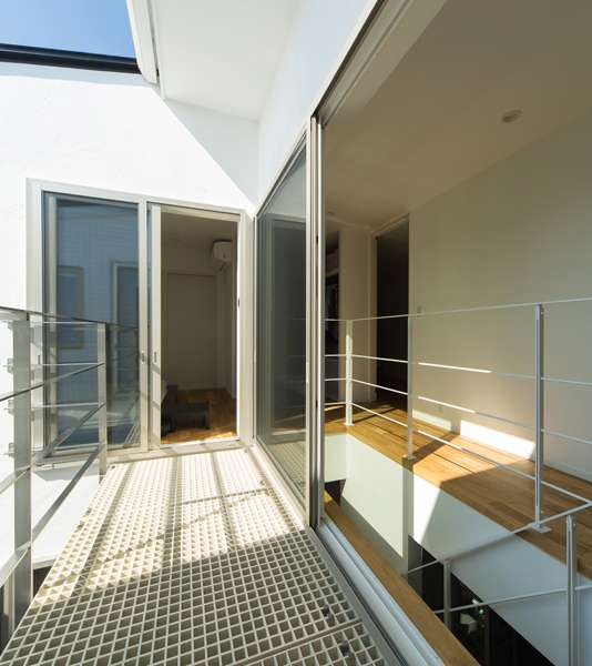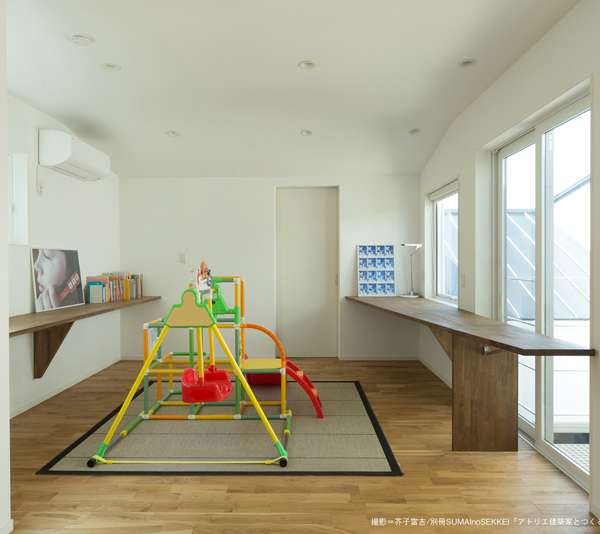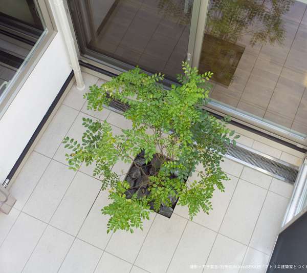 プライバシーを確保しながら、家全体に心地よい光や風を招き入れる中庭。夏にはプールを出して子どもたちと遊んだりするほか、ハンモックも計画中だそうです。