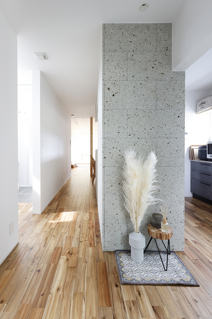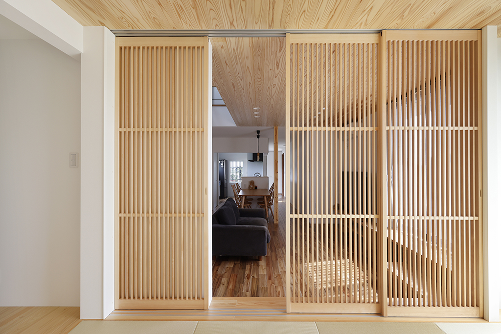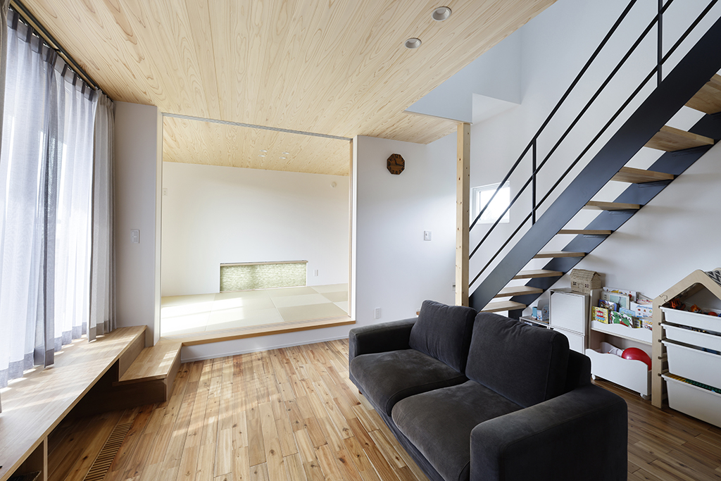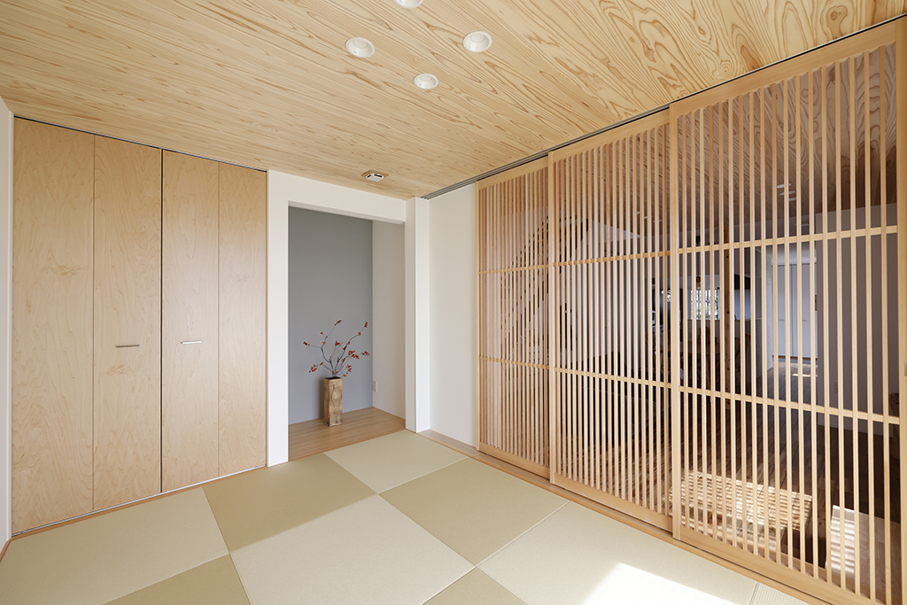 ・玄関から最も遠い場所に小上がりの和室を配置することで、落ち着きと非日常性が備わっている。