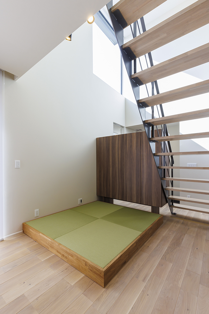 ・階段脇に設けた小上がりの畳スペースは、くつろぎやちょっとした作業にも重宝。