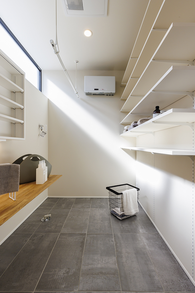 ・洗濯・アイロン・収納が一か所で完結する、機能的でゆとりあるランドリースペース。