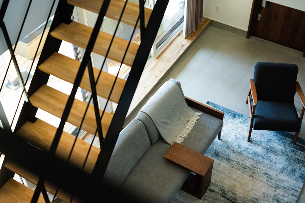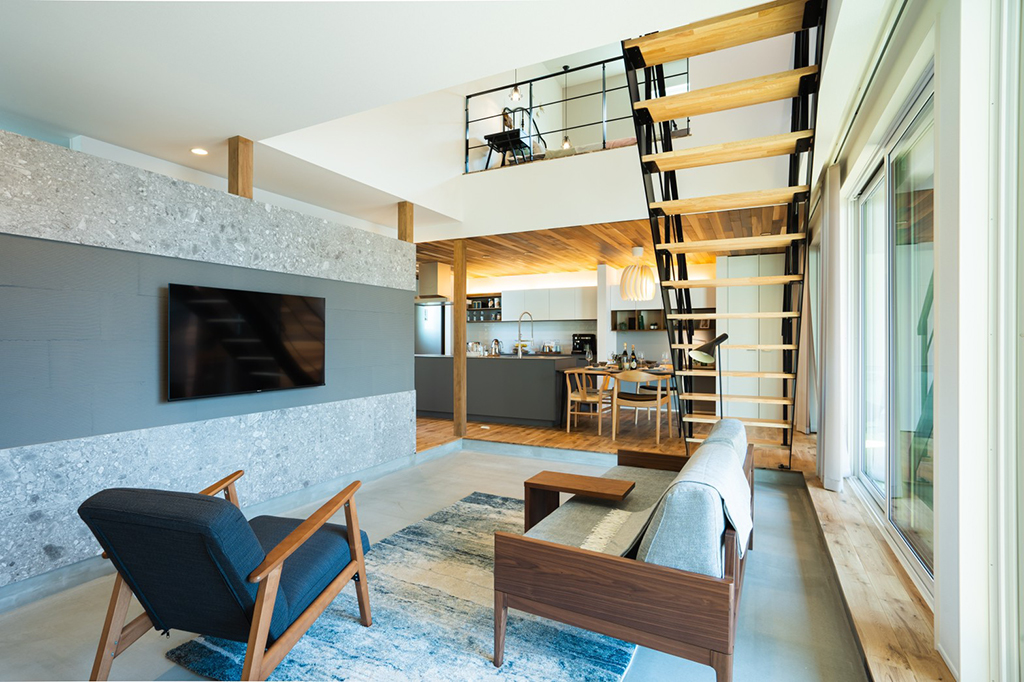 ・土間リビングは室内にいながらアウトドア気分を味わうことができ、そこから繋がるテラスや庭はセカンドリビングとしても活用可能。