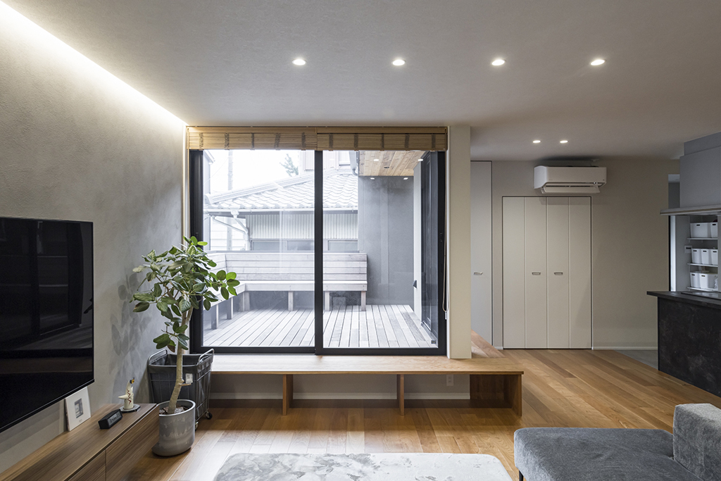 テラスとLDKの間には家族みんなが一緒に過ごせるベンチを設置。