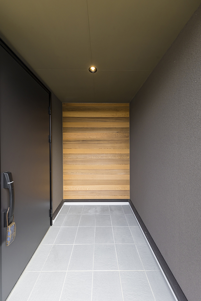 軒の深い玄関ポーチで、雨の日にも濡れずに出入りすることが可能。