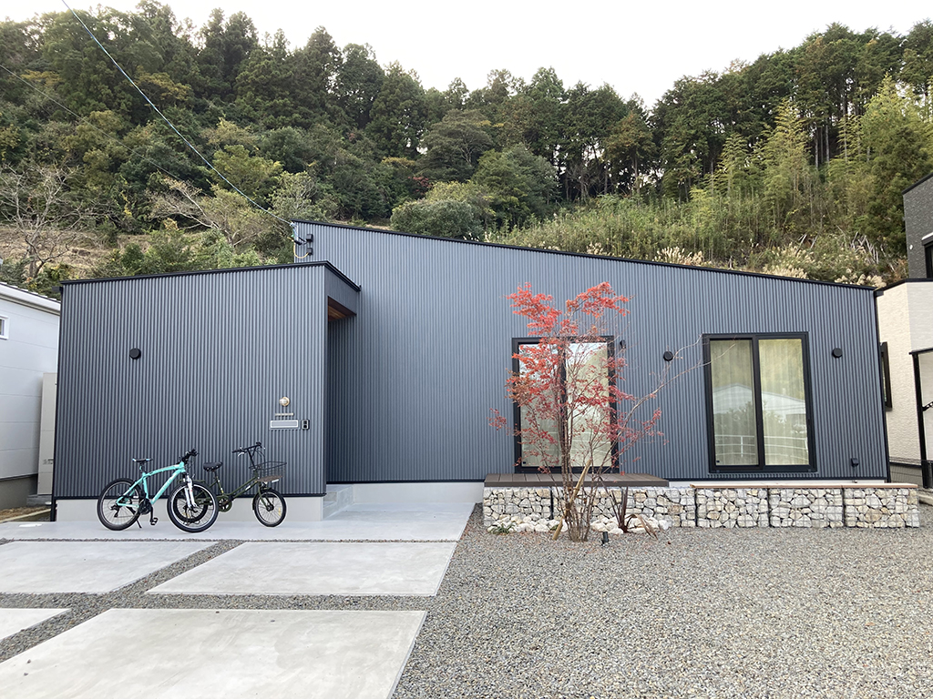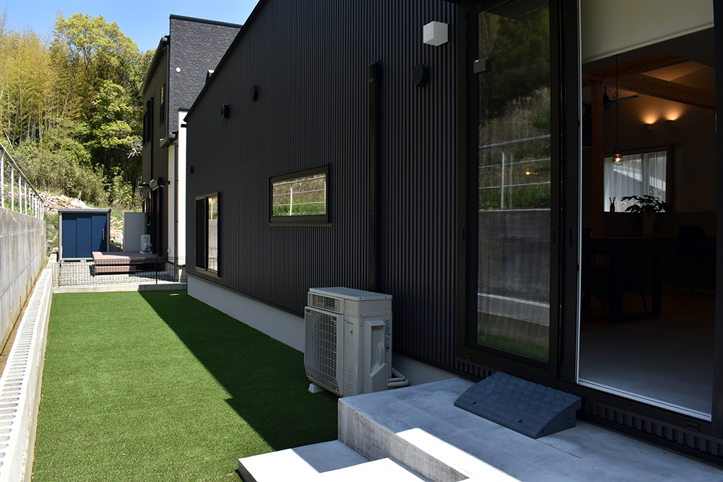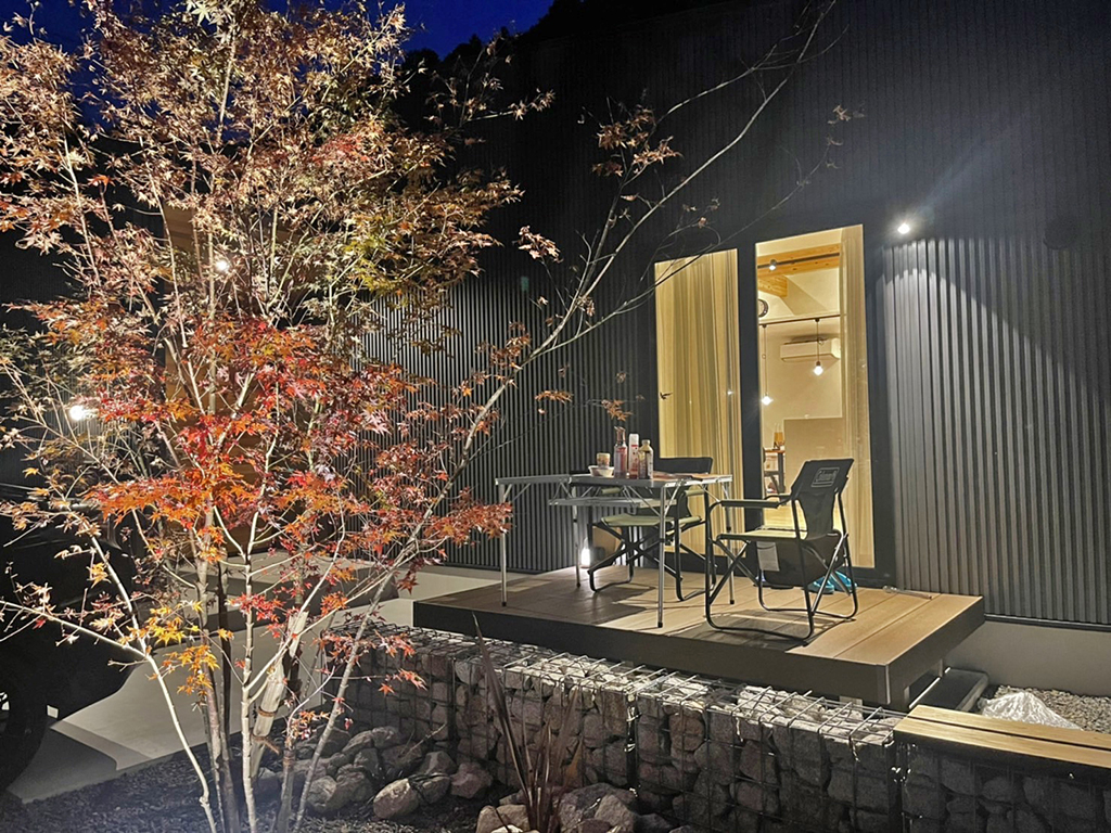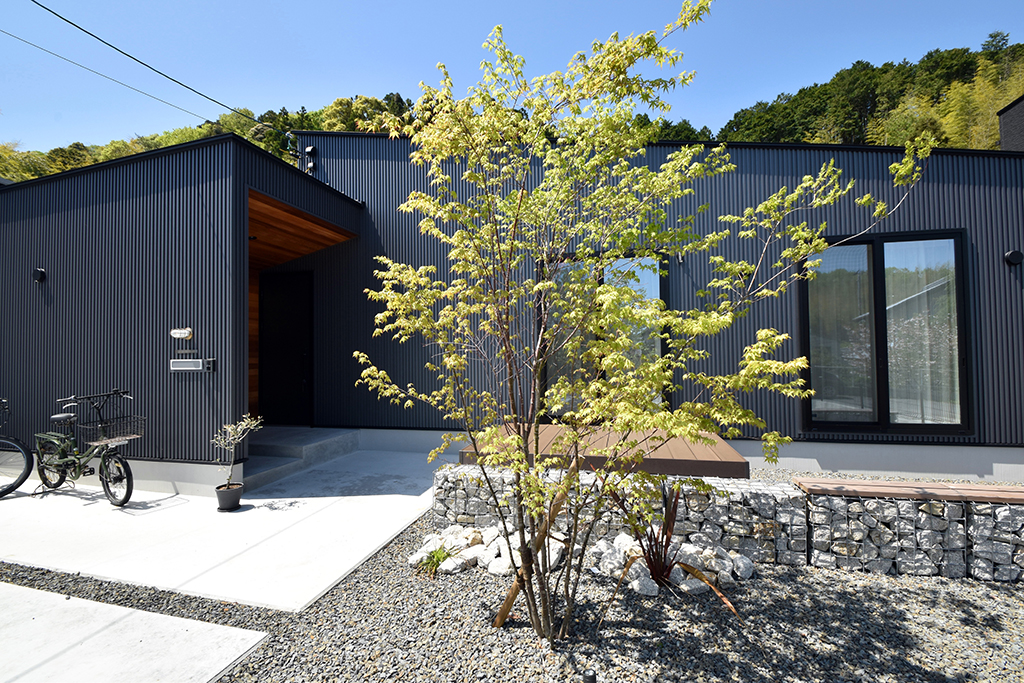 ・アプローチ横のウッドデッキにはモミジの木が彩りを添え、洗練された佇まいを演出。