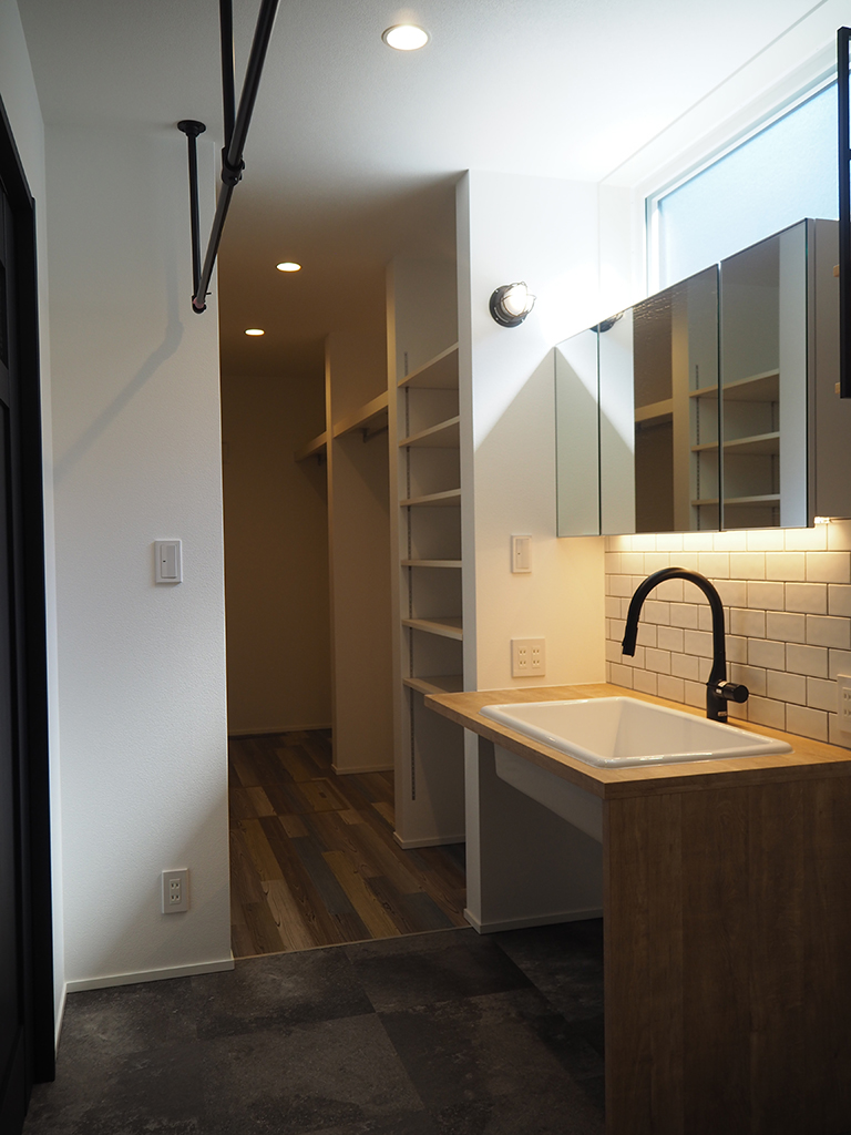 ・洗面、脱衣室、収納、クローゼットなどが一体となったサニタリースペース。