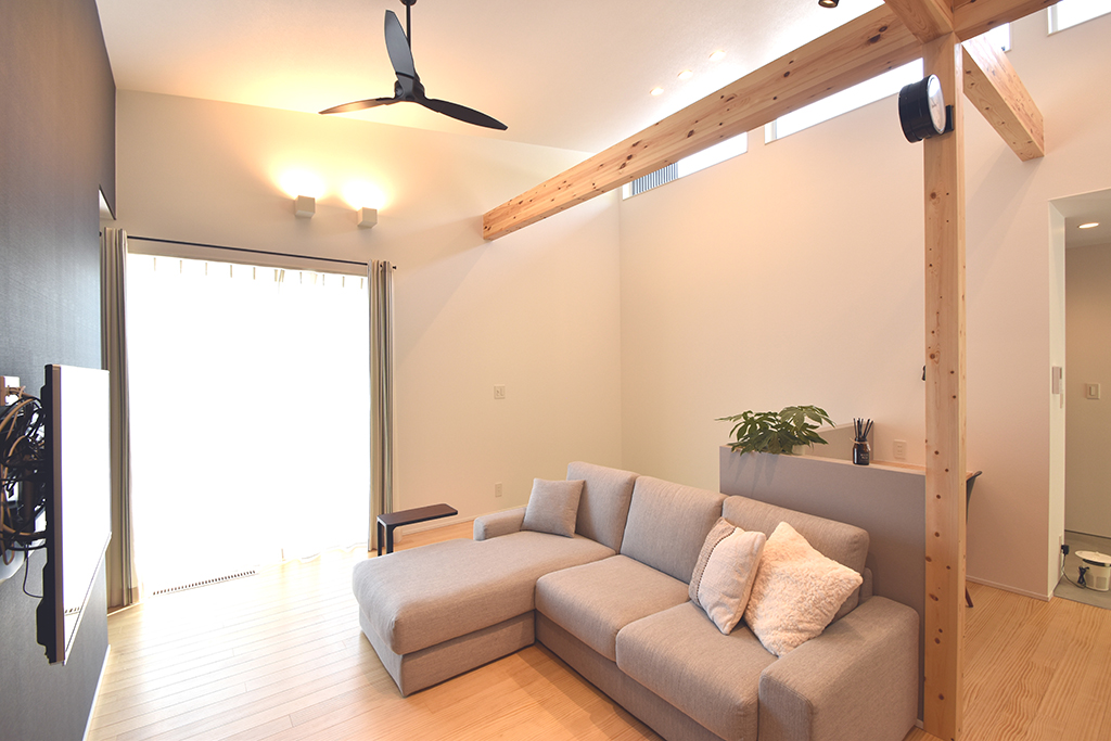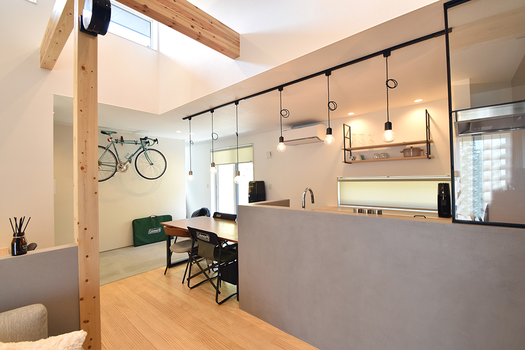 ・愛犬のくつろぎ場所として、広い土間空間をLDKに直結するように配置。