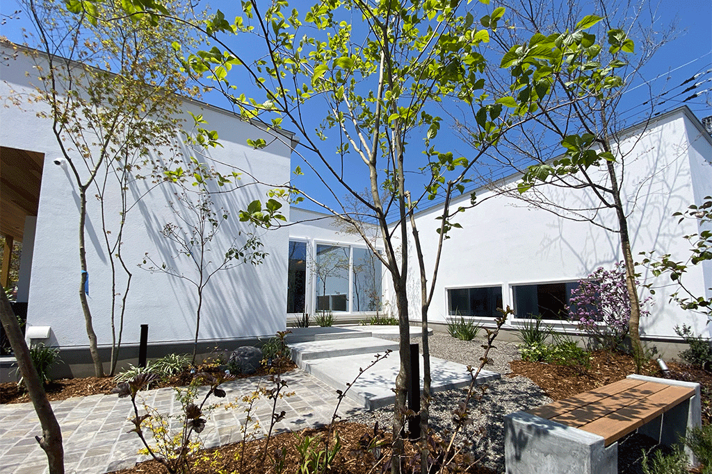 ・どこにいても家族の気配が緩やかに伝わり、だんらんの場も個の空間もすべてが庭へと繋がる設計。