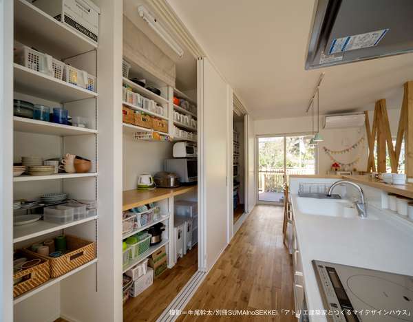 ◎キッチン背面には壁一面に収納スペースを設置。食器以外も家電や雑貨までたっぷり収納できます。