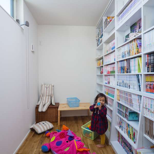 収納上手な奥様がボックス収納にしているため引き戸を開けていても整然とした印象。