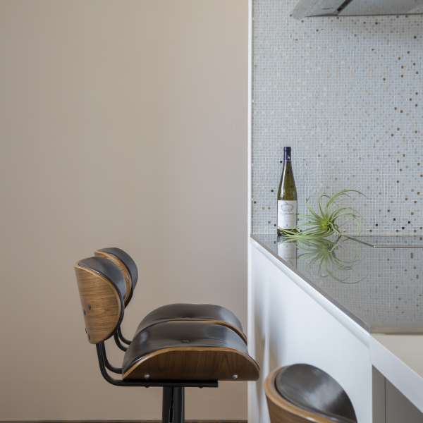 リビング越しに水面を眺めながら落ち着いてくつろげるキッチンは、ご夫婦のお気に入り場所です。