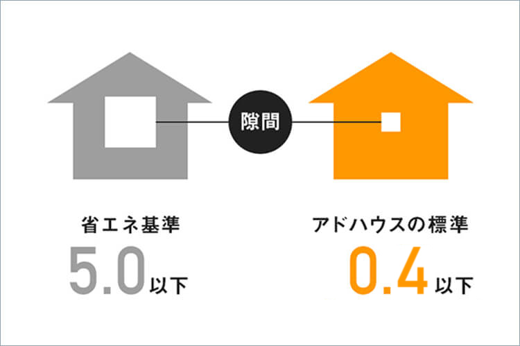 日本で最も寒さの厳しい北海道の基準値が「0.46」に対して、アドハウス仕様は「0.4」