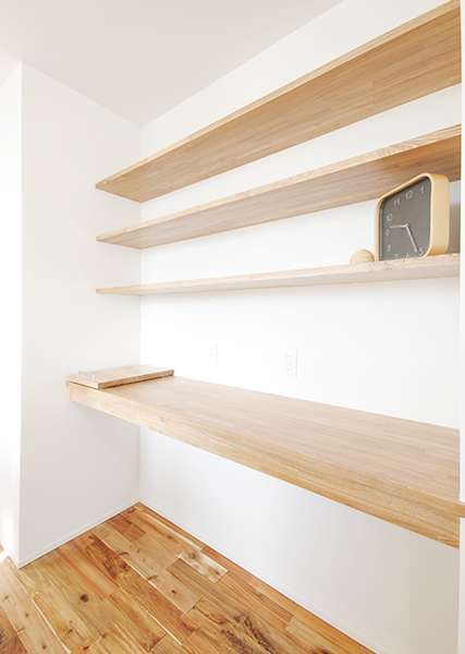 また既製品の収納を極力使用せず可動棚と飾り棚を多用したフレキシブルな収納計画もこだわりポイント。