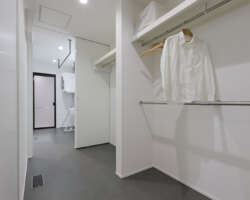 ・リビング、ホール、水回りを回遊できる合理的な動線設計。