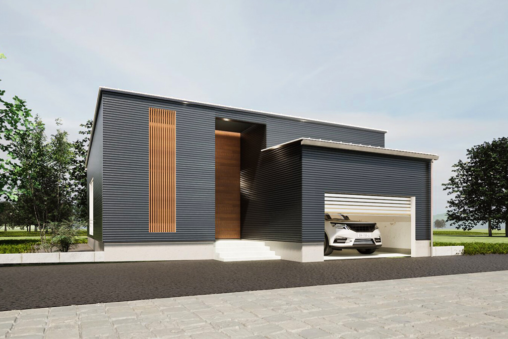 ガレージと住居部分を土間スペースがゆるやかにつなぎ、リビングや寝室、家のどこからでも愛車を眺められる設計に。