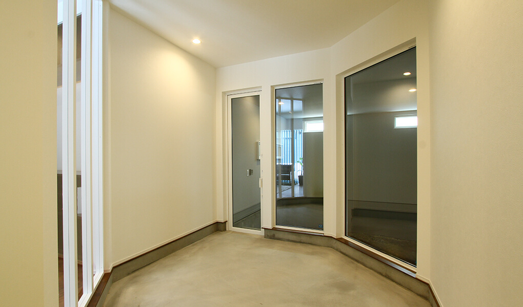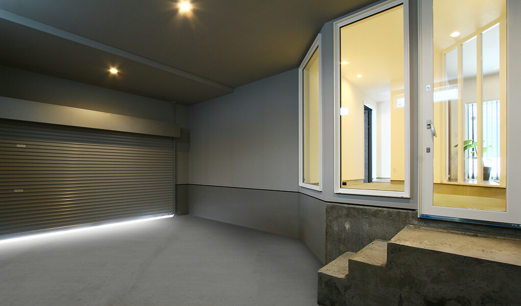 電動シャッターのインナーガレージは車の保管だけでなく、冬場の利便性も抜群。