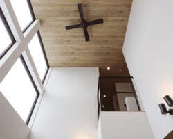 開放感を追求した吹き抜けと大開口の窓、そして間仕切りを極力減らした一体感のあるLDKが魅力。