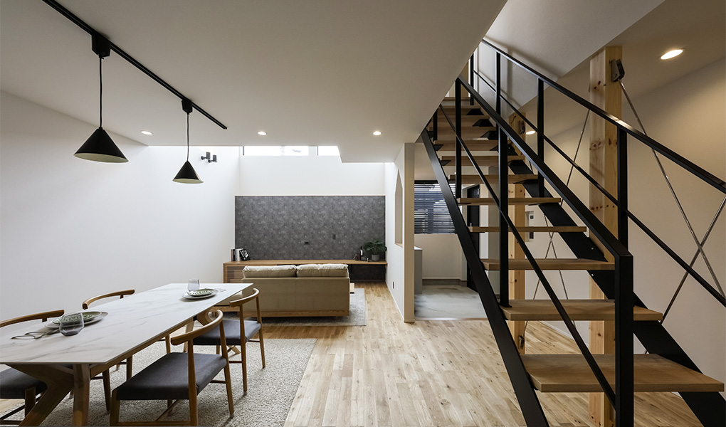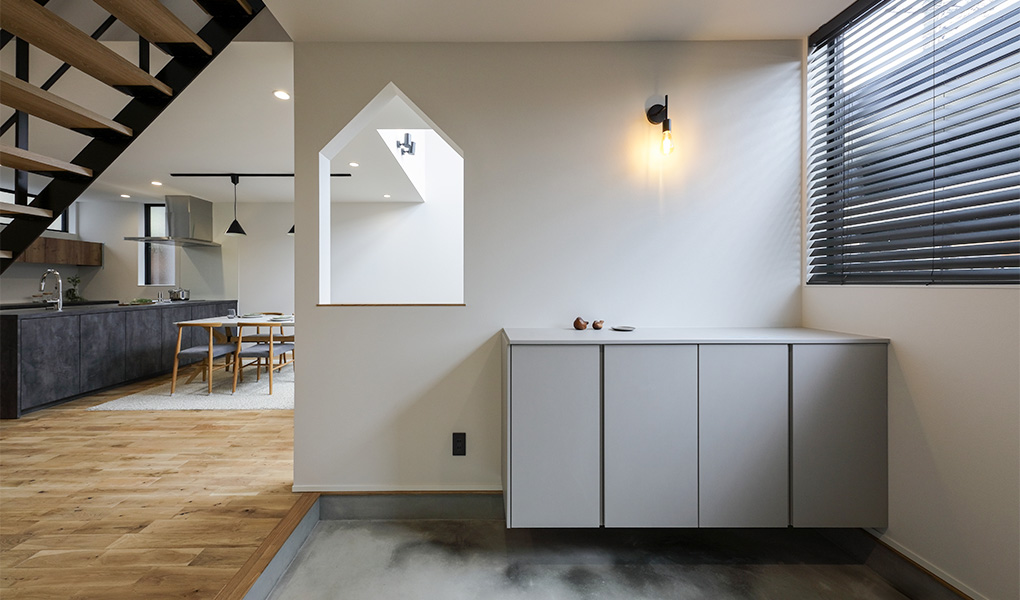 外出好きのご夫婦が、「家で過ごすのもいいな」と思えるような空間を求め、建築家が設計した住まい。