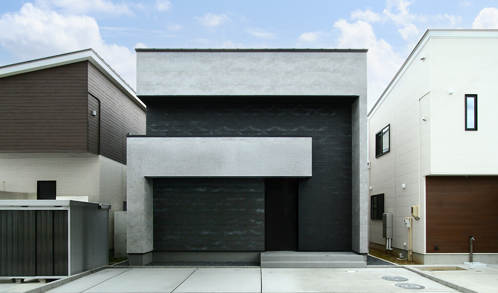 石目×コンクリート調のコントラストが映える、洗練された佇まい。