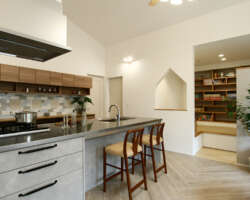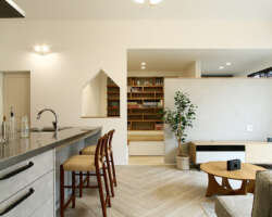 リビングとは壁や扉で仕切らずにゆるやかに隣接しており、空間全体に広がりと一体感をもたらします。