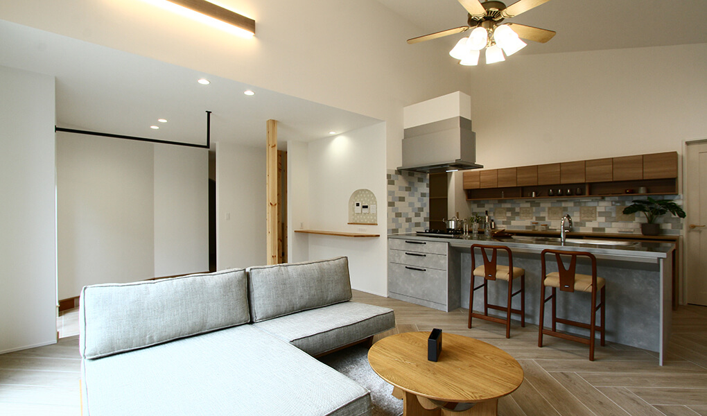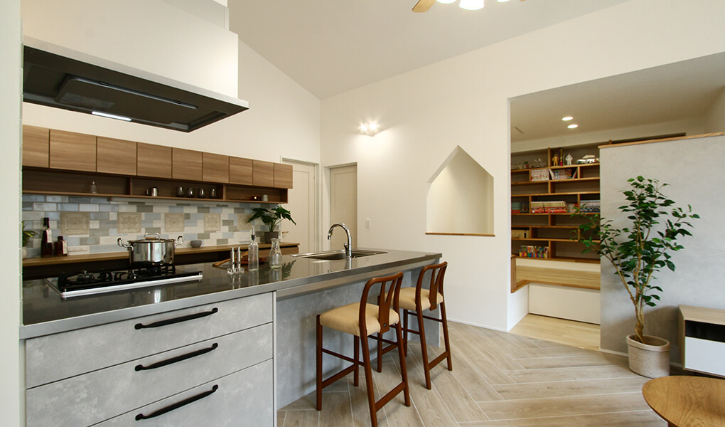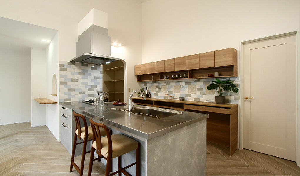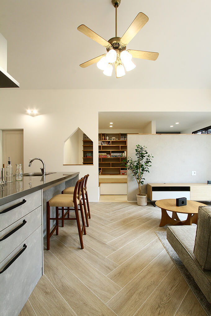 リビングとは壁や扉で仕切らずにゆるやかに隣接しており、空間全体に広がりと一体感をもたらします。