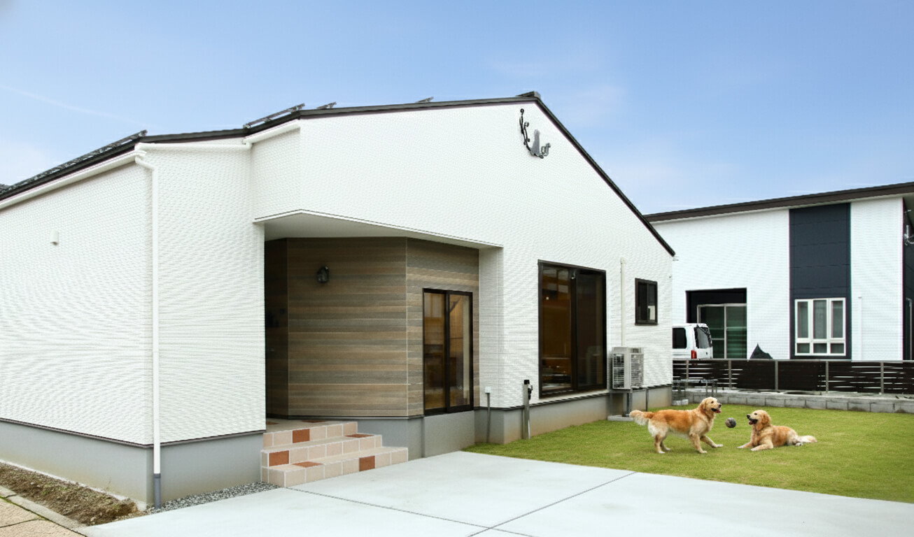 平屋ならではのスマートな動線設計に、ペットと暮らす快適さと夫婦の趣味スペースという