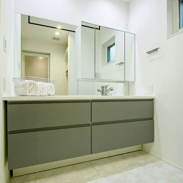 コンロ側は同デザインのバックセットも配置し収納スペースも充実。